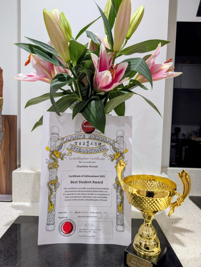 We are delighted that Charlotte Perrott won the ‘2025 Best Student Award’ for Karate Budokan International in Wales. A huge congratulation for your commitments, dedications in supporting, promoting our organisation – Well done from all of the executive board members of KBI – Wales.